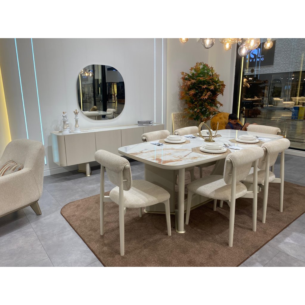 Jídelní stůl Brigada s keramickou deskou spojuje moderní funkčnost s vytříbeným stylem. Keramická deska je nejen odolná vůči poškrábání a vysokým teplotám, ale je také dostupná v různých barevných variantách, které si můžete prohlédnout v přiložených fotografiích produktu.