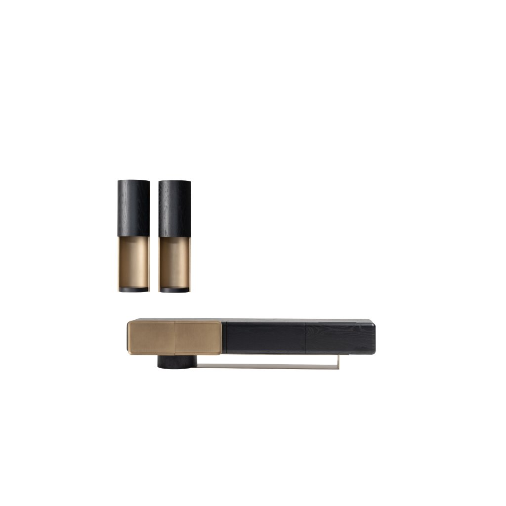 Nástěnná police Grande je jedinečným propojením moderního designu a luxusního provedení. Vyrobena z MDF vysoké hustoty potažené kouřovou dubovou dýhou, zaujme precizně zpracovanými detaily v mosazné barvě, které byly lakovány elektrostatickou technologií. Integrované LED osvětlení nejen podtrhuje její elegantní vzhled, ale také zvýrazní umístěné dekorace. Tento designový prvek je díky kvalitním materiálům a sofistikovanému zpracování velmi dekorativní.