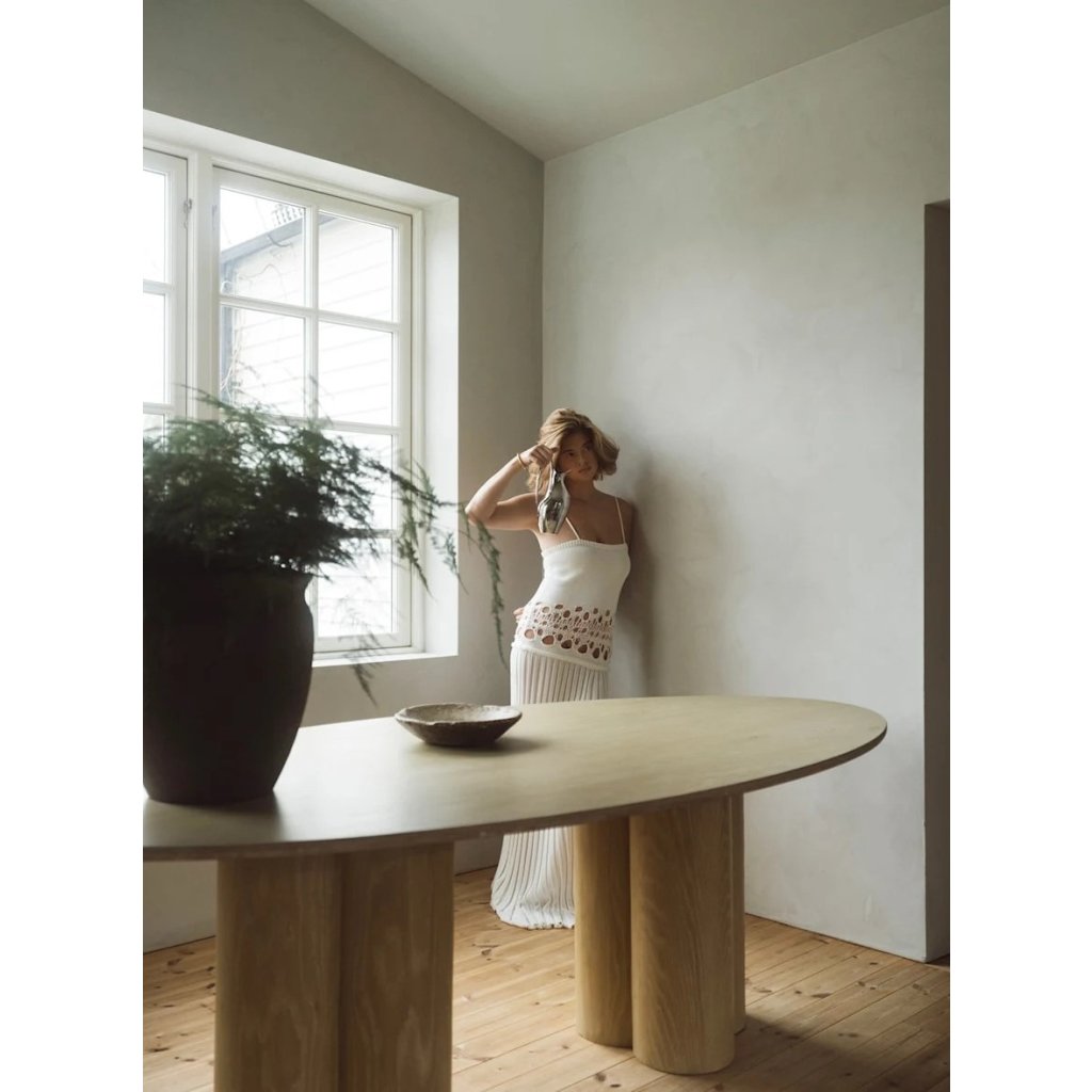 Moderní oválný stůl s organickou deskou a sloupovou středovou nohou, která zajišťuje stabilitu bez zbytečného zaplňování prostoru.Stůl Vám nabízíme v laku v odstínu RAL...