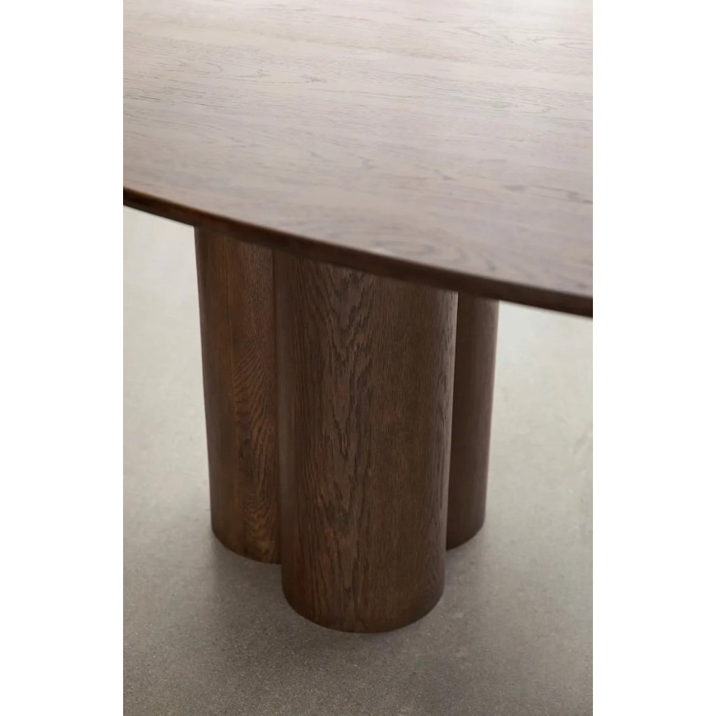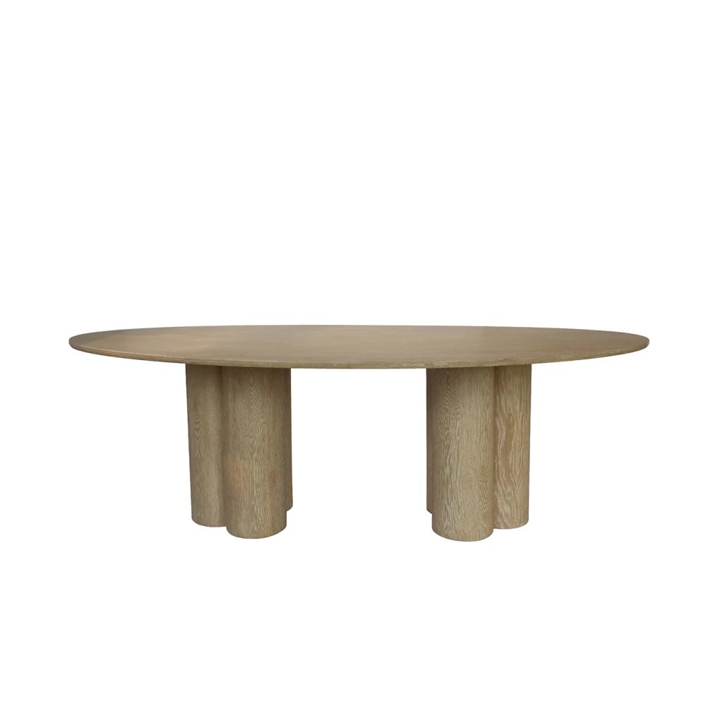 Varianta stolu Flora s keramickou deskou posouvá jeho eleganci na novou úroveň. Zachovává si jemně eliptický tvar a designové nohy složené ze tří štíhlých sloupků, ale místo klasické dýhované desky nabídne odolný a luxusní keramický povrch.