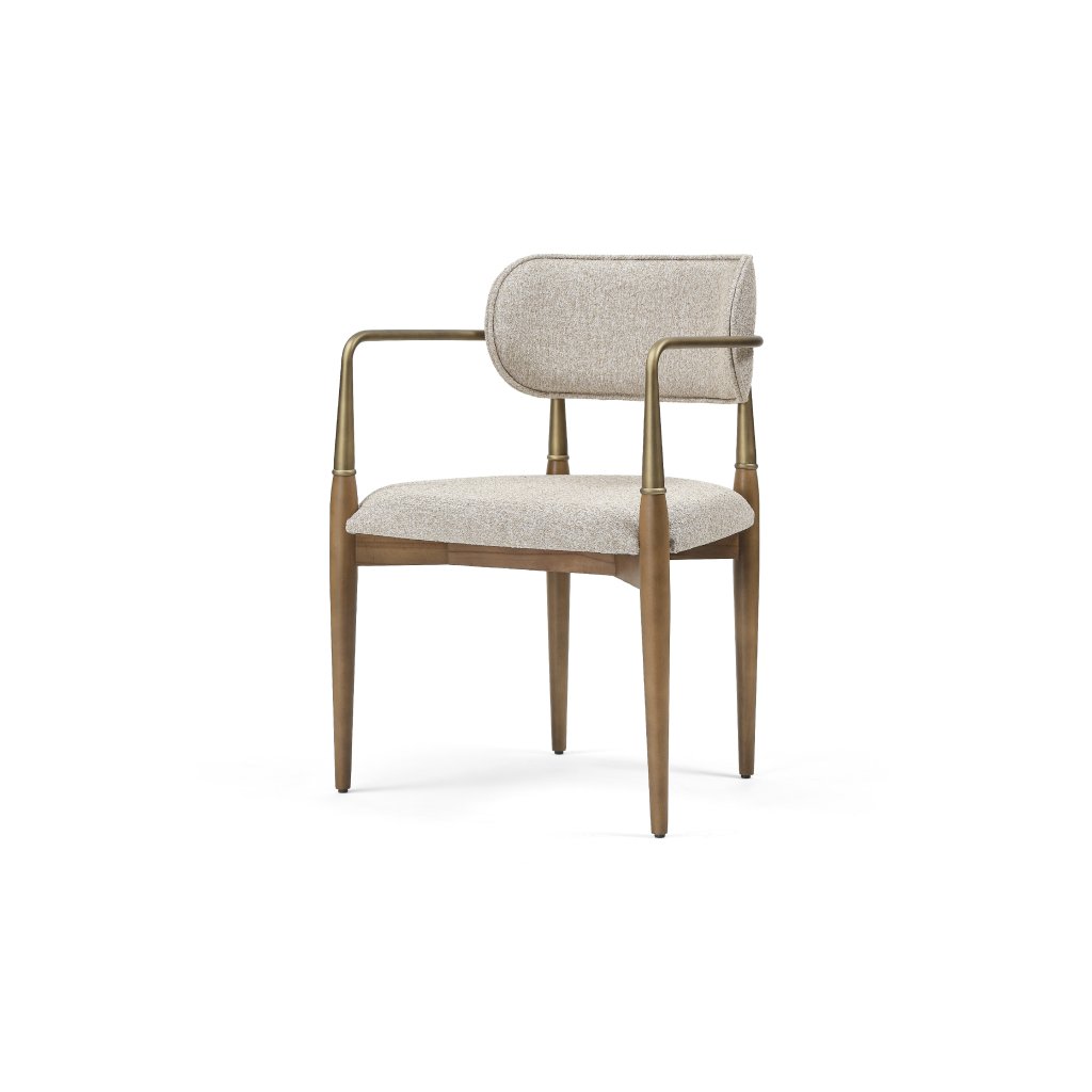 Židle Berlin spojuje přírodní krásu masivního habrového dřeva s luxusem odolného lněného čalounění. Její subtilní konstrukce s jemně zaoblenými tvary působí lehce a vzdušně, přesto je pevná a stabilní. Čalouněný sedák i opěrka zajišťují maximální pohodlí, zatímco područkám dodává šarm elegantní zlacení s matným efektem. Díky harmonickému spojení přírodních materiálů, decentního zdobení a moderního tvarosloví se židle Berlin stane stylovým doplňkem jakéhokoli interiéru — od klasického po současný.