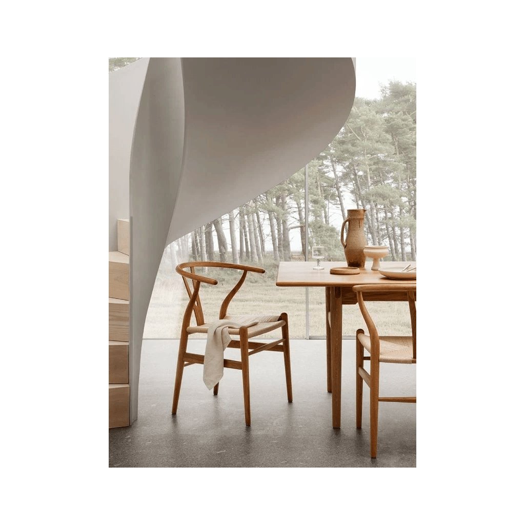 Židle z masivního habrového dřeva s mořidlem v odstínu tmavého dubu. Kombinace subtilního tvaru a provázkového výpletu dodává nábytku elegantní a nadčasový vzhled.