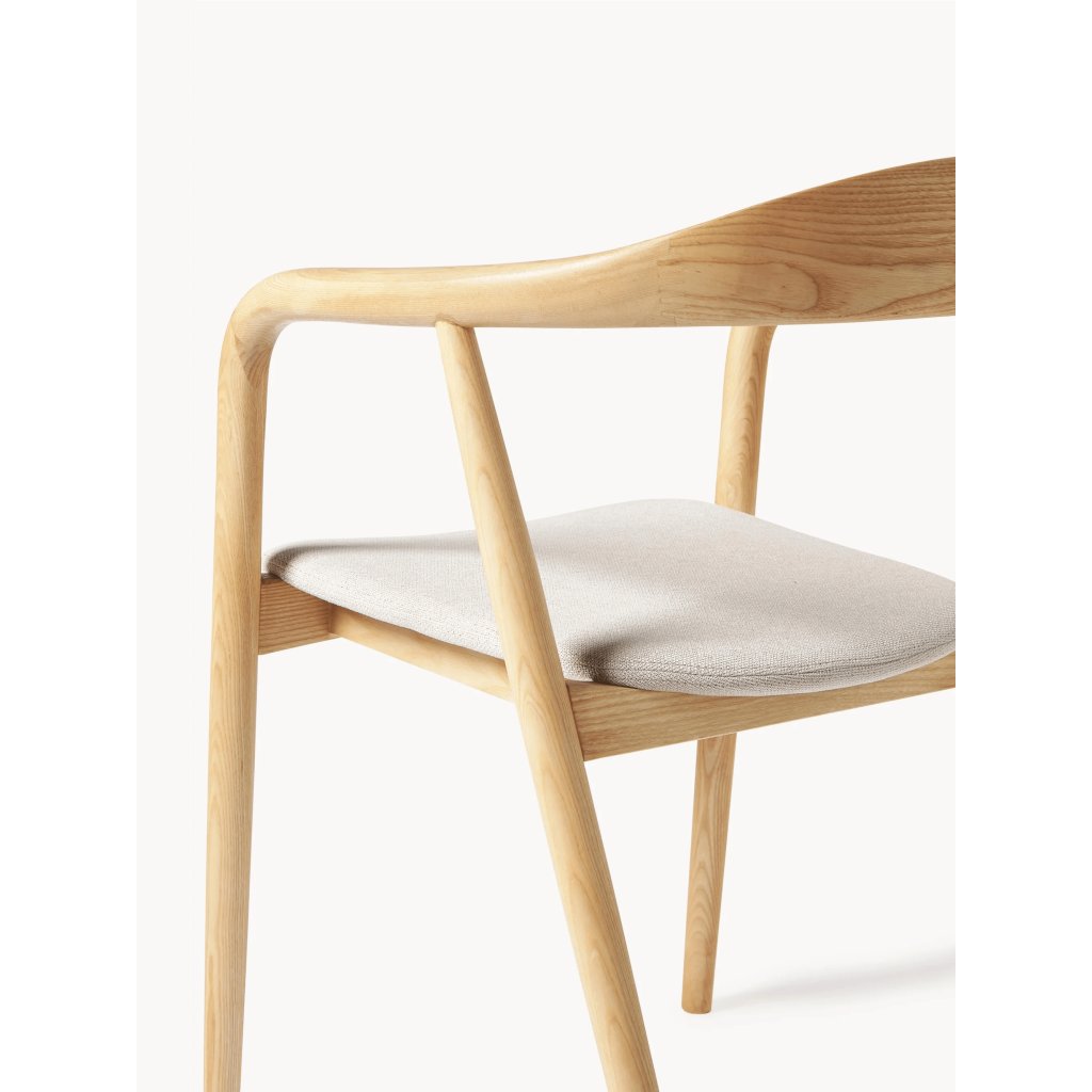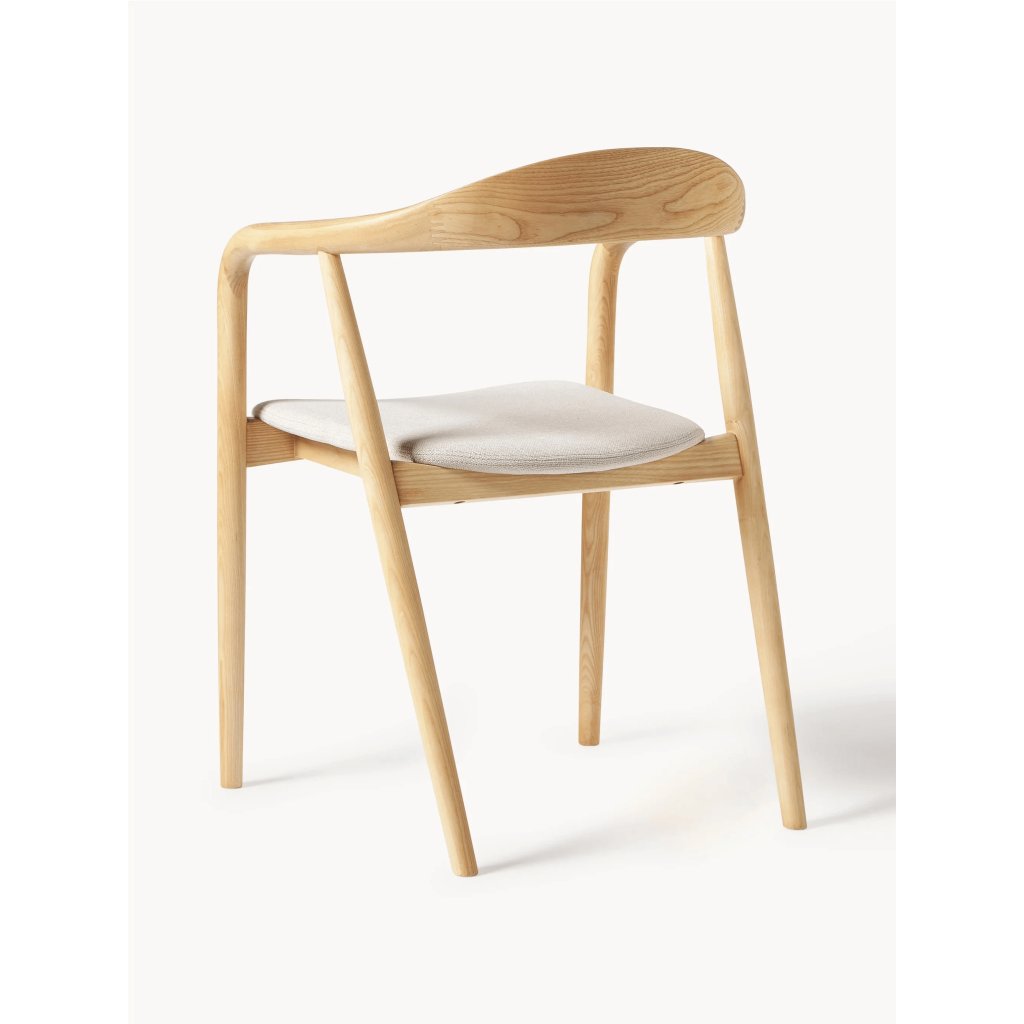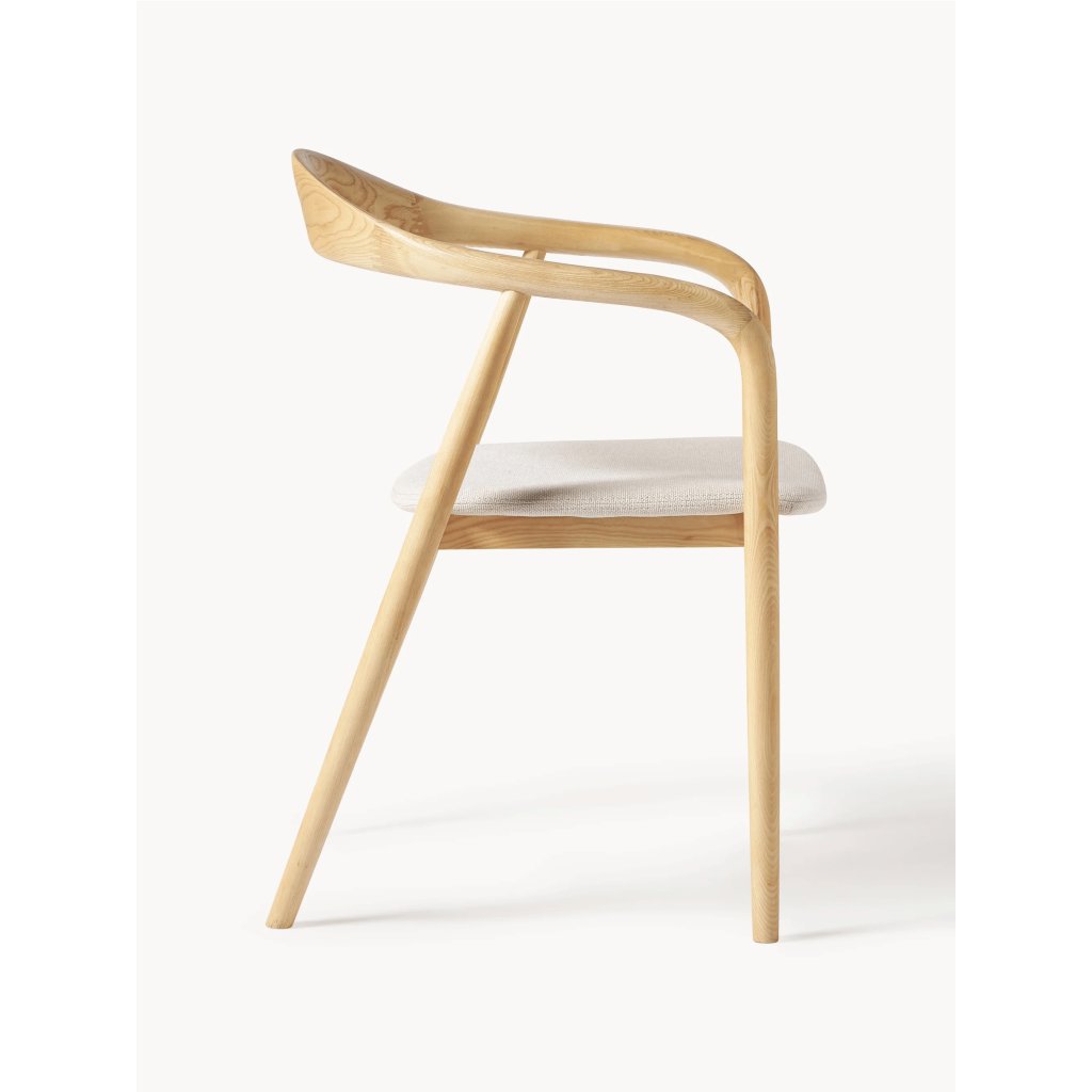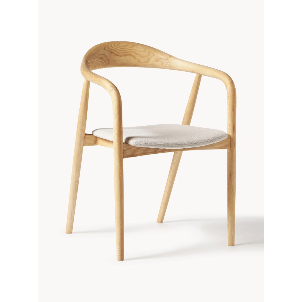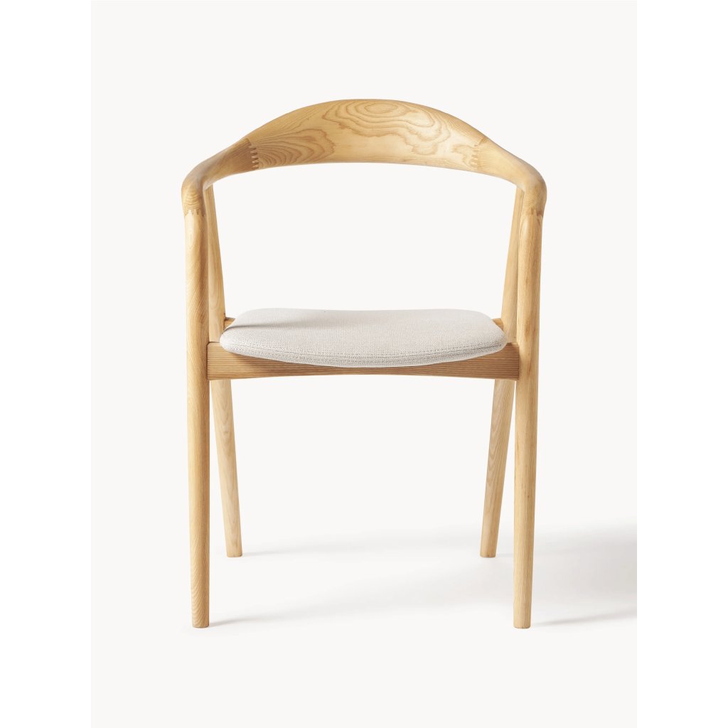 Varianta Orella v přírodním provedení zdůrazňuje krásu a jedinečnost masivního habrového dřeva. Bez povrchové úpravy dřevo vyniká svou přirozenou kresbou a teplým odstínem. Ohýbaná zádová opěrka plynule navazuje na područky a společně tvoří harmonický, minimalistický design. Sedák je čalouněný přírodním lněným materiálem, který zajišťuje pohodlí a dodává židli autentický charakter. Orella v přírodním provedení je skvělou volbou do světlých, přírodních i moderně laděných interiérů.