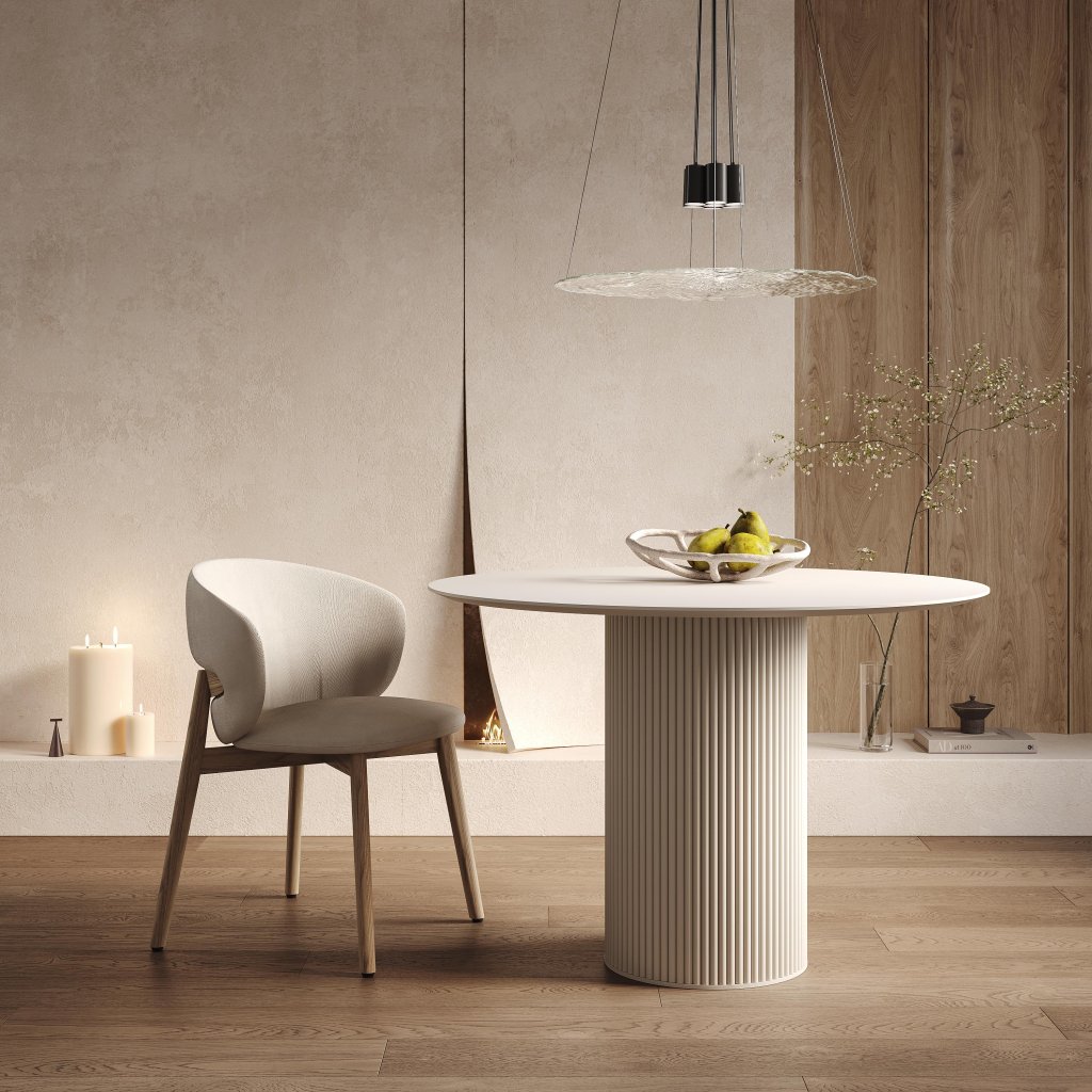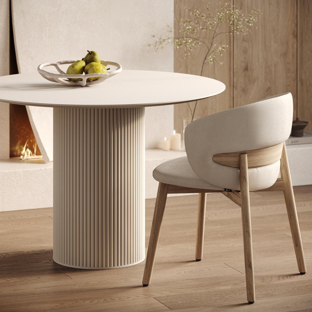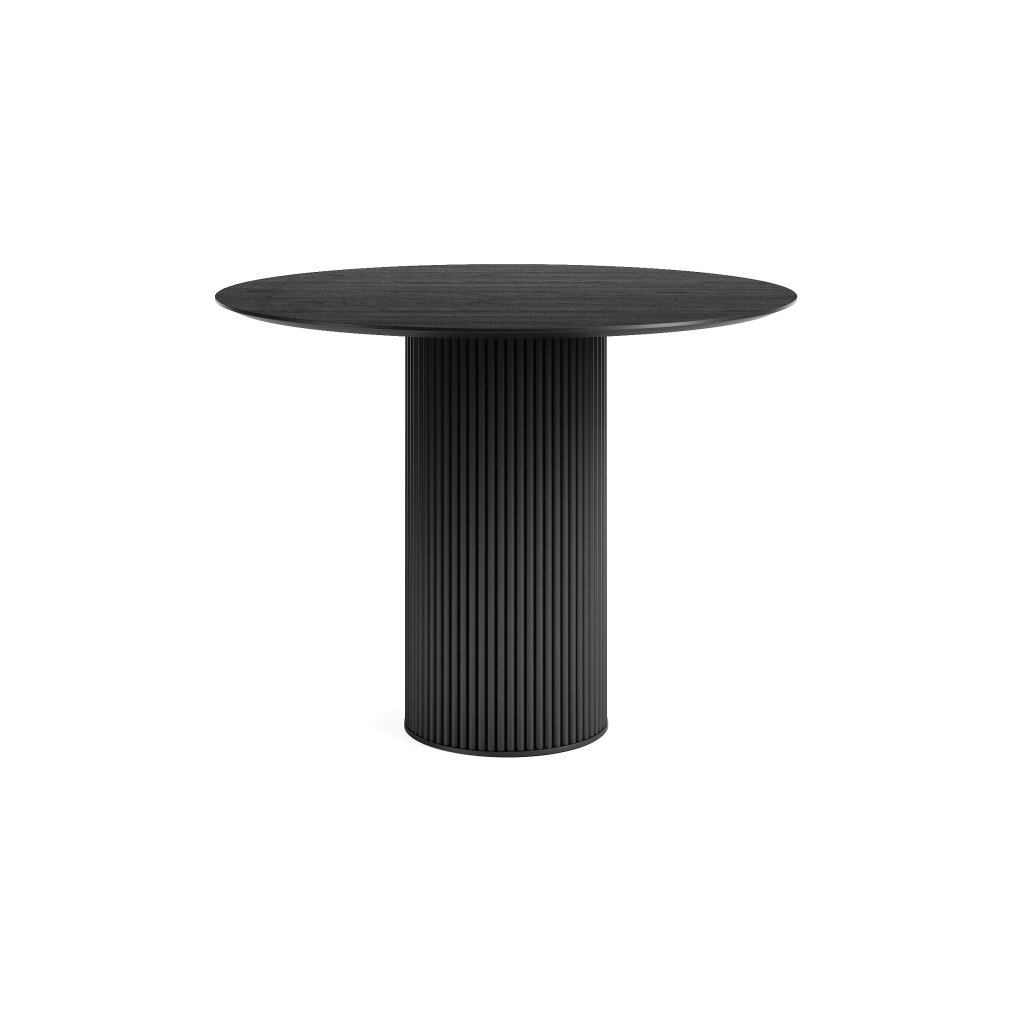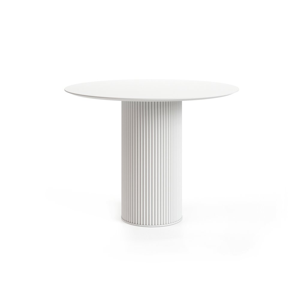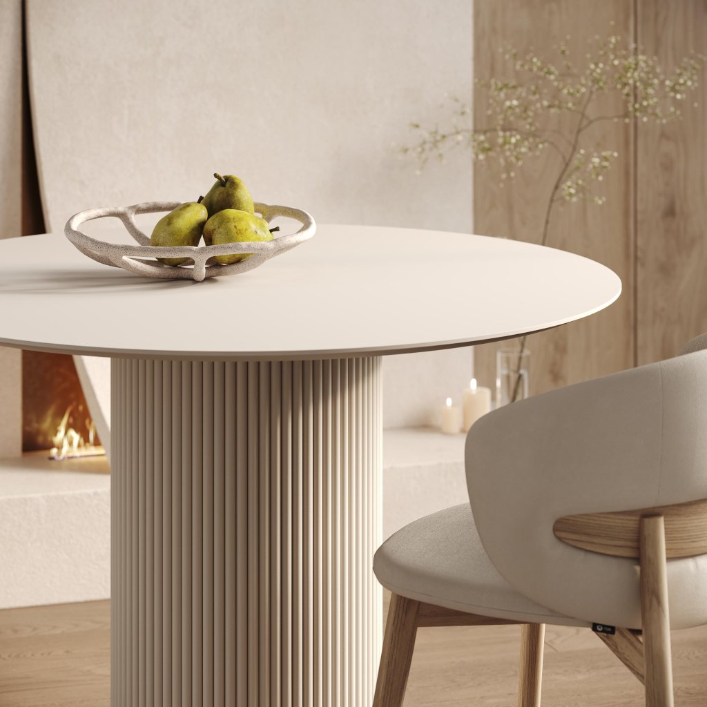 Jídelní stůl Luna je moderní a nadčasový kousek, který zaujme svou čistou formou a precizním zpracováním. Kulatá deska o průměru 100 cm poskytuje komfortní prostor pro 4 osoby, což jej činí ideálním pro menší rodinné či přátelské posezení. Centrální noha ve tvaru sloupu s jemným žebrováním přidává stolku výrazný, ale nenápadný designový prvek.
