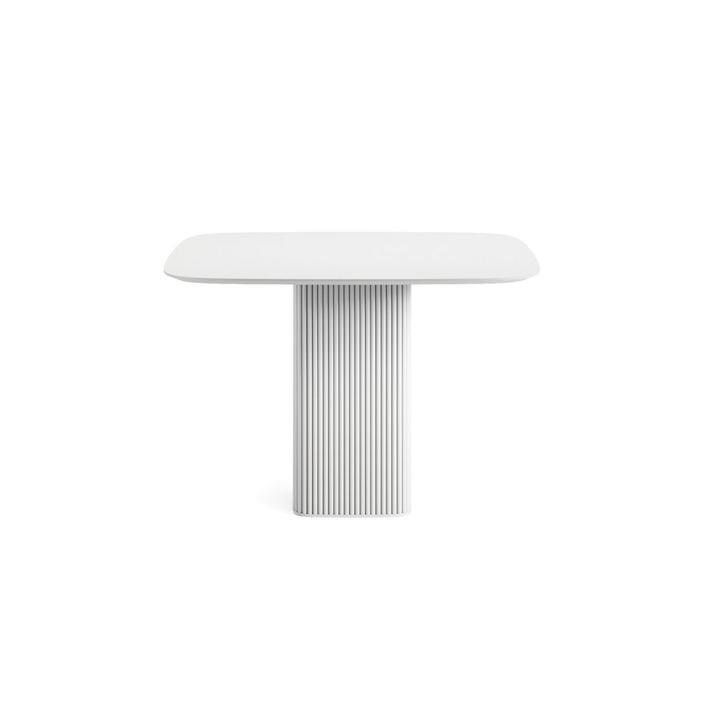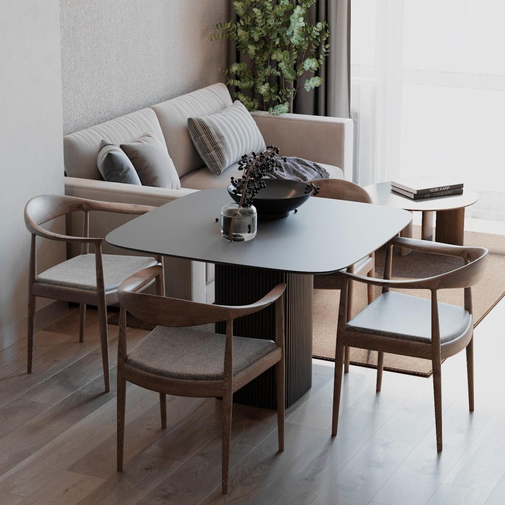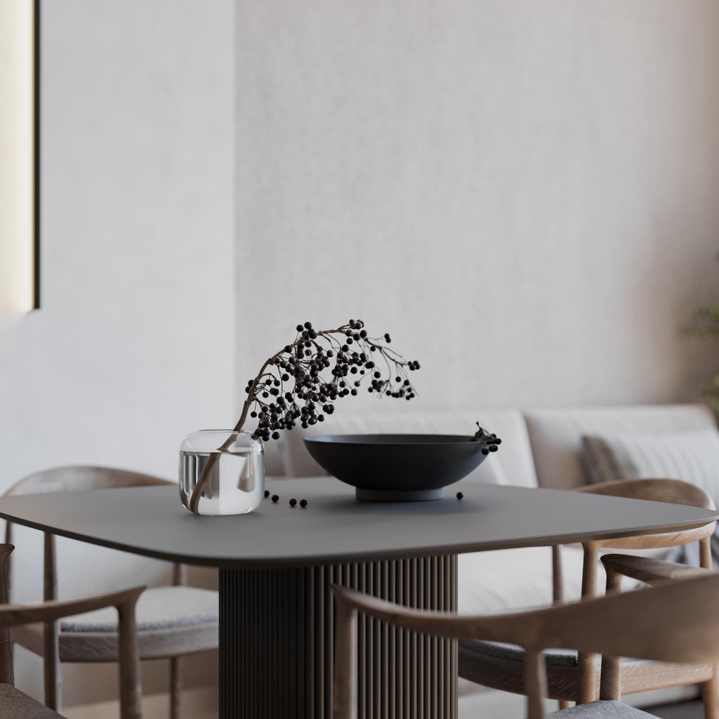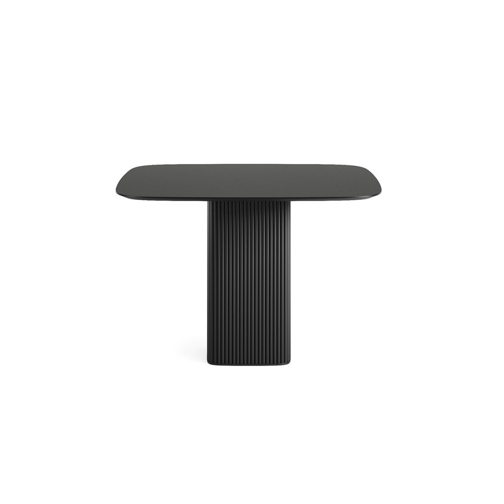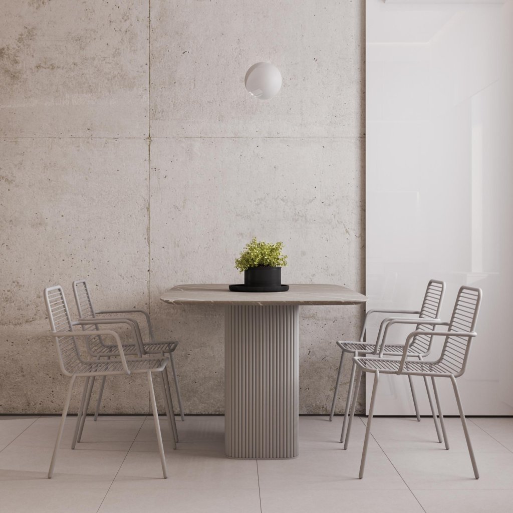 Jídelní stůl Oasis představuje moderní a nadčasový kousek s důrazem na čisté linie a precizní provedení. Zaoblený čtvercový tvar desky poskytuje komfortní prostor pro 4 osoby, zatímco centrální hranatá noha s jemným vroubkováním přidává výrazný, ale nenápadný designový prvek a nezavazí při sezení.